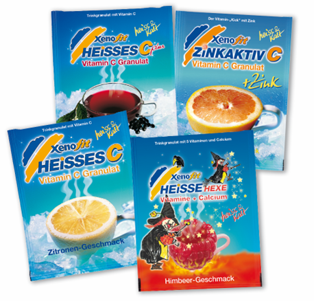 Das Heisse C von Xenofit liefert pro Portion 225 mg wertvolles Vitamin C, das besonders in den nasskalten Monaten wichtig ist. Vitamin C trägt zur Unterstützung des Immunsystems bei. Das Getränk überzeugt durch einen fruchtigen Zitronengeschmack. Als Pulver in der Vorratsdose oder in der Packung mit Einzelportionsbeuteln für jeweils 200 ml Fertiggetränk kann Heisses C bei Bedarf immer schnell zubereitet werden. Einfach das Pulver in eine Tasse geben und mit heißem Wasser auffüllen. Die Geschmacksvariante Heisses C plus mit dem wertvollem Holunderextrakt und Honiggeschmack liefert die genauso viel Vitamin C.