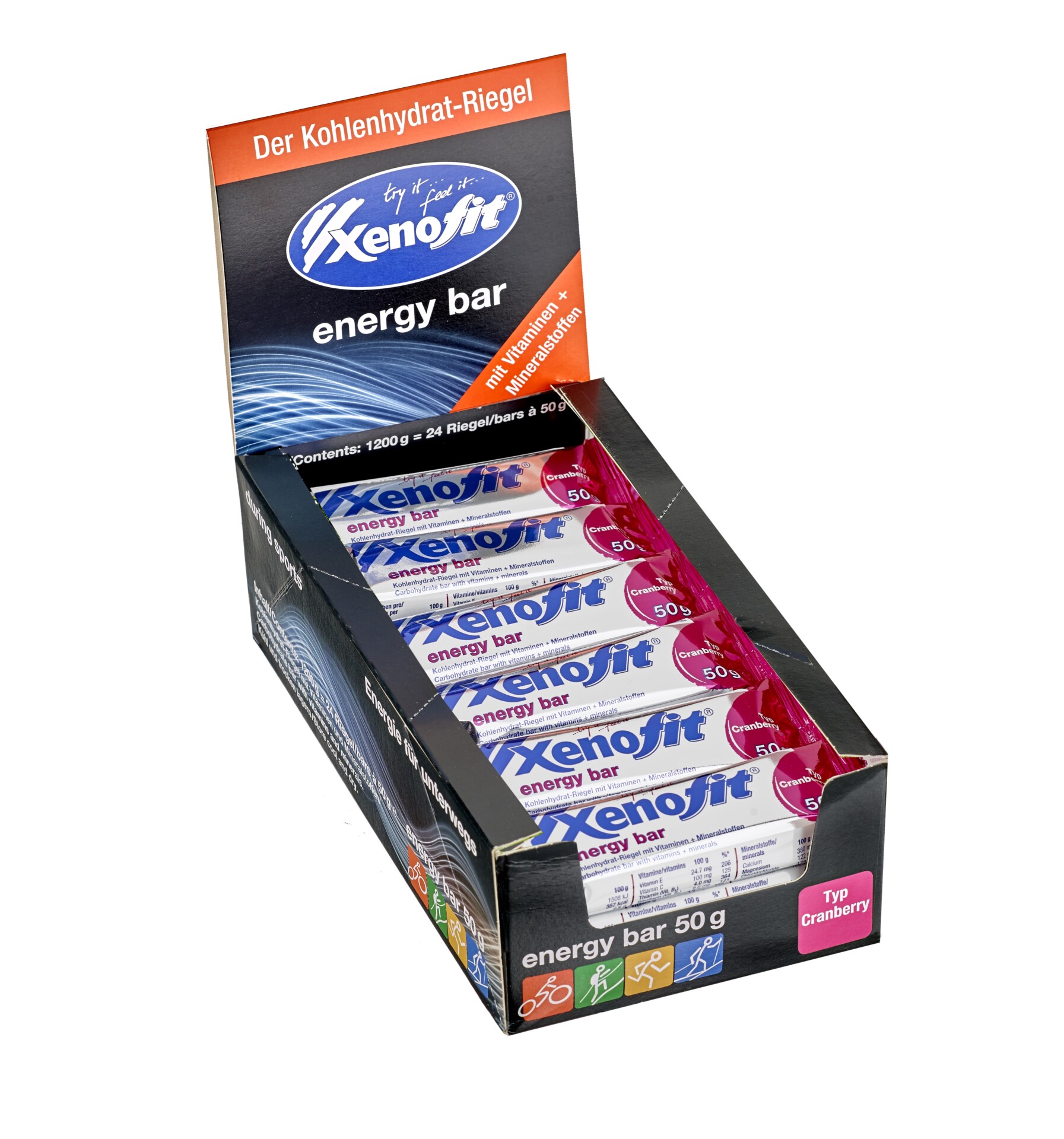 Dieser Energie-Riegel erfรผllt mit seiner optimierten Zusammensetzung aus Kohlenhydraten, Fett und Eiweiร die modernen Anforderungen an einen Sport-Riegel. Xenofit energy bar unterstรผtzt die Empfehlung der DGE (Deutsche Gesellschaft fรผr Ernรคhrung), mehr als 50% des Energiebedarfs durch Kohlenhydrate zu decken. Wichtiger Bestandteil von allen vier erhรคltlichen Geschmacksrichtungen sind Haferflocken. Haferflocken bestehen zu ca. 70 % aus langkettigen Kohlenhydraten und versorgen den Kรถrper lรคngerfristig mit Energie. Auf das Zusetzen von geschmacksfรถrderndem Fett und kรผnstlichen Farbstoffen wird verzichtet. Zusรคtzlich enthรคlt Xenofit energy bar wichtige Vitamine und Mineralstoffe, insbesondere die fรผr den Energiestoffwechsel notwendigen Vitamine B1, B2, B6 und Niacin, sowie das โSportler-Mineralโ Magnesium und das โKnochen-Mineralโ Calcium. Magnesium trรคgt u. a. zur Verringerung von Mรผdigkeit und Erschรถpfung bei, Calcium wird fรผr gesunde Knochen benรถtigt.